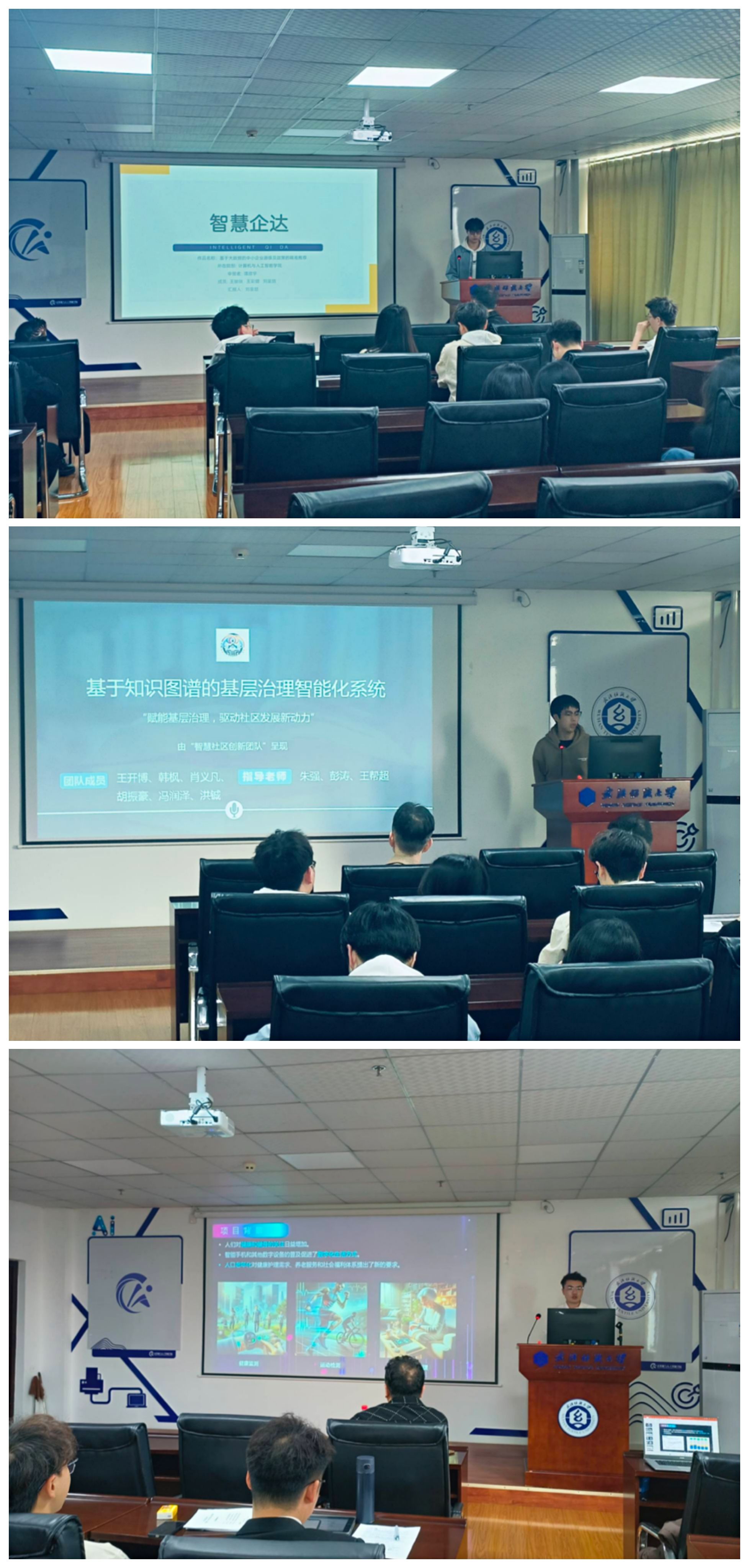 在公开答辩环节,每个小组按照编号依次上台发言进行讲解答辩。每一组讲解完毕之后,评委老师对作品进行提问与评价,依次进行打分。在比赛过程中,选手们展示了丰富的知识储备、较强的团队协作能力和创新思维。