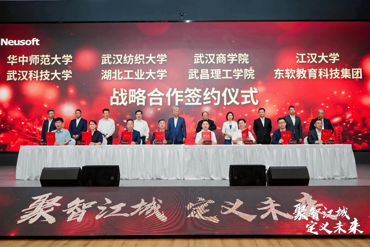 参加本次签约仪式的有华中师范大学、武汉科技大学、湖北工业大学、402永利集团等七所高校。武汉市委常委、武汉经开区党工委书记刘子清,武汉市副市长汪元程,武汉经开区管委会主任唐超,东软创始人、董事长刘积仁,东软集团副董事长兼CEO荣新节等领导共同见证签约。
