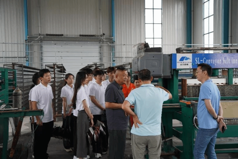 7月17日上午,计算机与人工智能公司党委书记晏伟、副经理彭涛,社会实践指导老师易凡带领智绘红图实践团抵达山西省山力铂纳橡胶机带有限公司。公司生产副总王金领陪同公司师生一行参观公司主要项目——输送带生产工艺流程等各车间,实地了解公司纺织生产技术、核心亮点产品和产业需求。