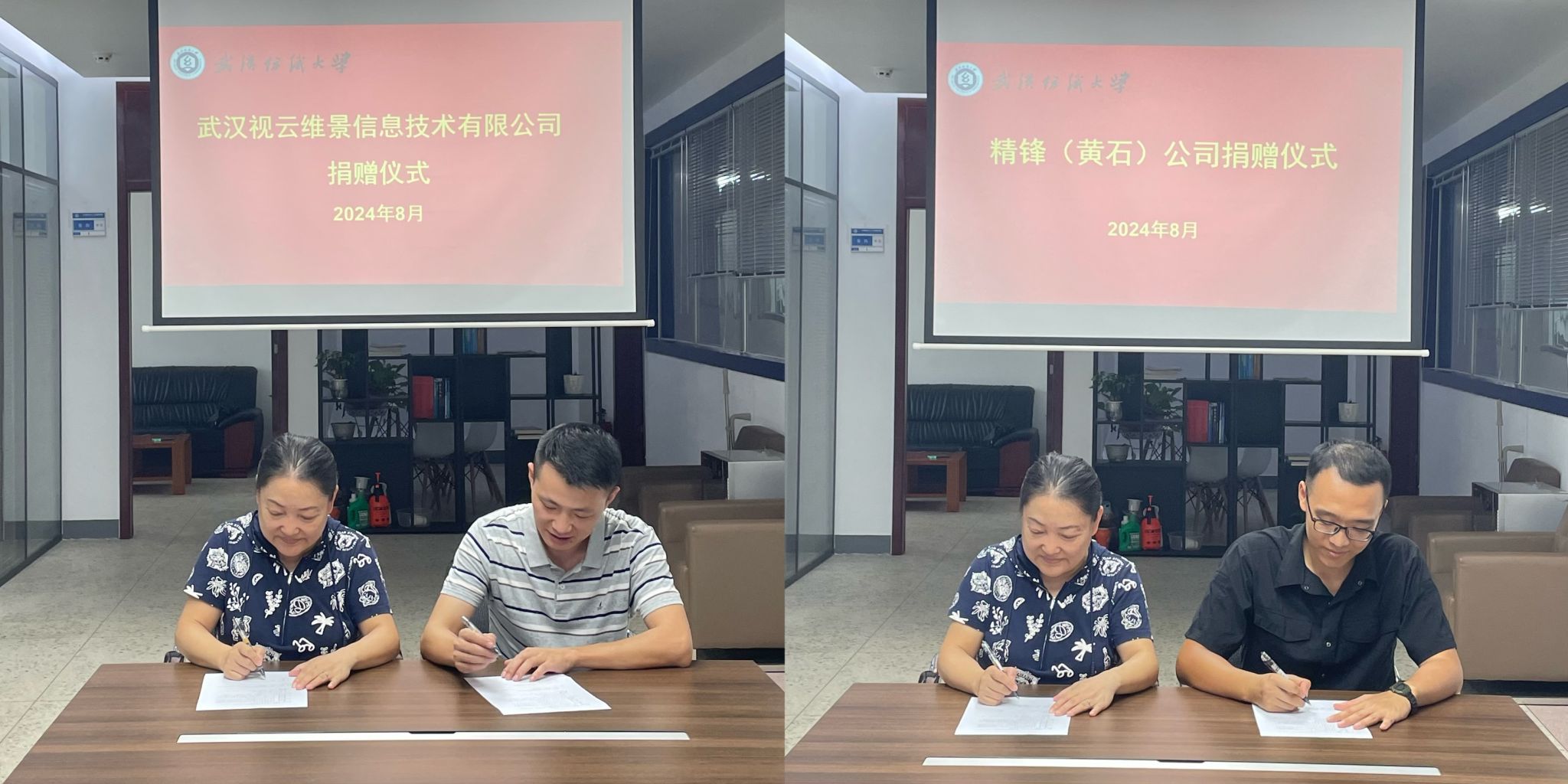 捐赠仪式上,黄毅代表武汉视云维景信息技术有限公司向公司教育发展基金会捐赠人民币400万元,陈伊驰代表精锋(黄石)公司向集团教育发展基金会捐赠人民币200万元,均主要资助计算机学科的团队建设和人才培养等方面。公司经理胡新荣与双方现场签署了捐赠协议。随后,双方就后续合作事宜进行了深入细致的沟通。