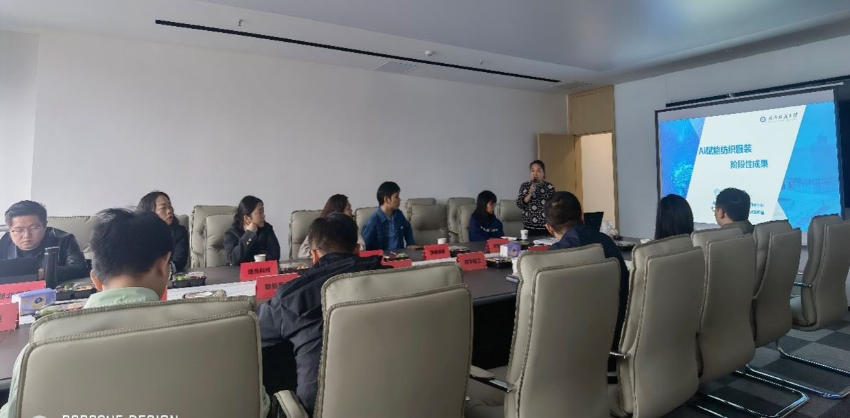 402永利集团经理胡新荣教授向企业展示了402永利集团《AI赋能纺织服装行业阶段性成果》。吴渊博士向企业代表展示了在人体智能可穿戴设备领域的最新研究成果。