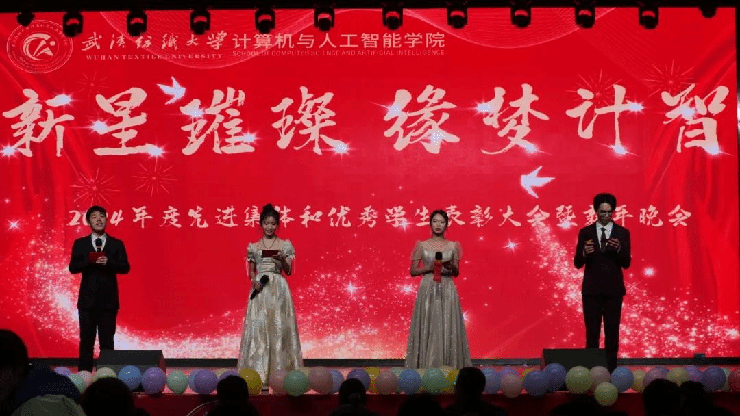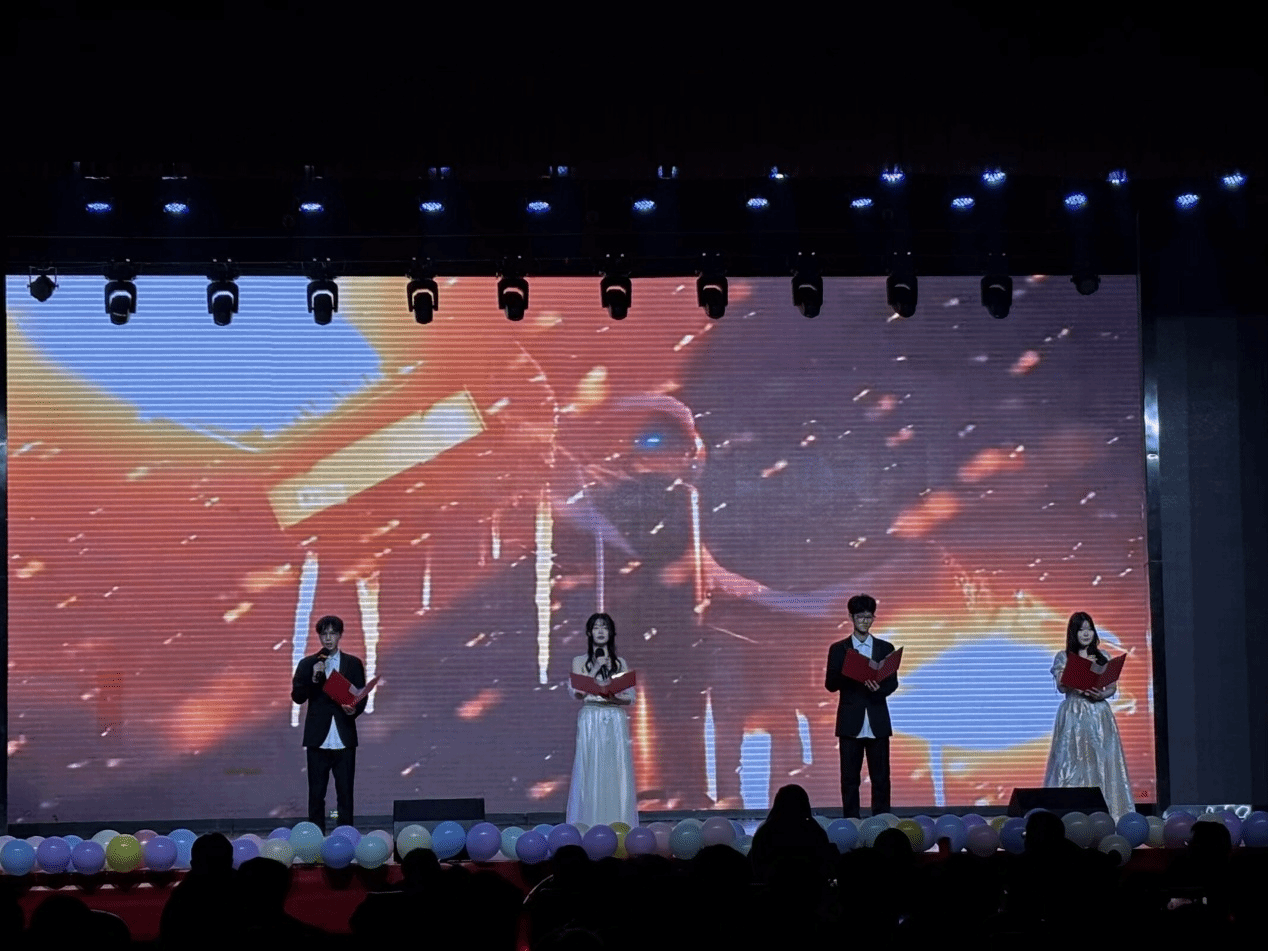 表彰大会后,迎新晚会在四位员工主持人史家豪、王奕涵、胡鼎文、许雨柔的精彩串场下正式开始。晚会以“新星璀璨·缘梦计智”为主题,分为“1024之缘·织初心”“1024之梦·绘未来”“1024之计·启星辰”“1024之智·共璀璨”四个篇章,共呈现了十余个形式多样、内容丰富的节目。