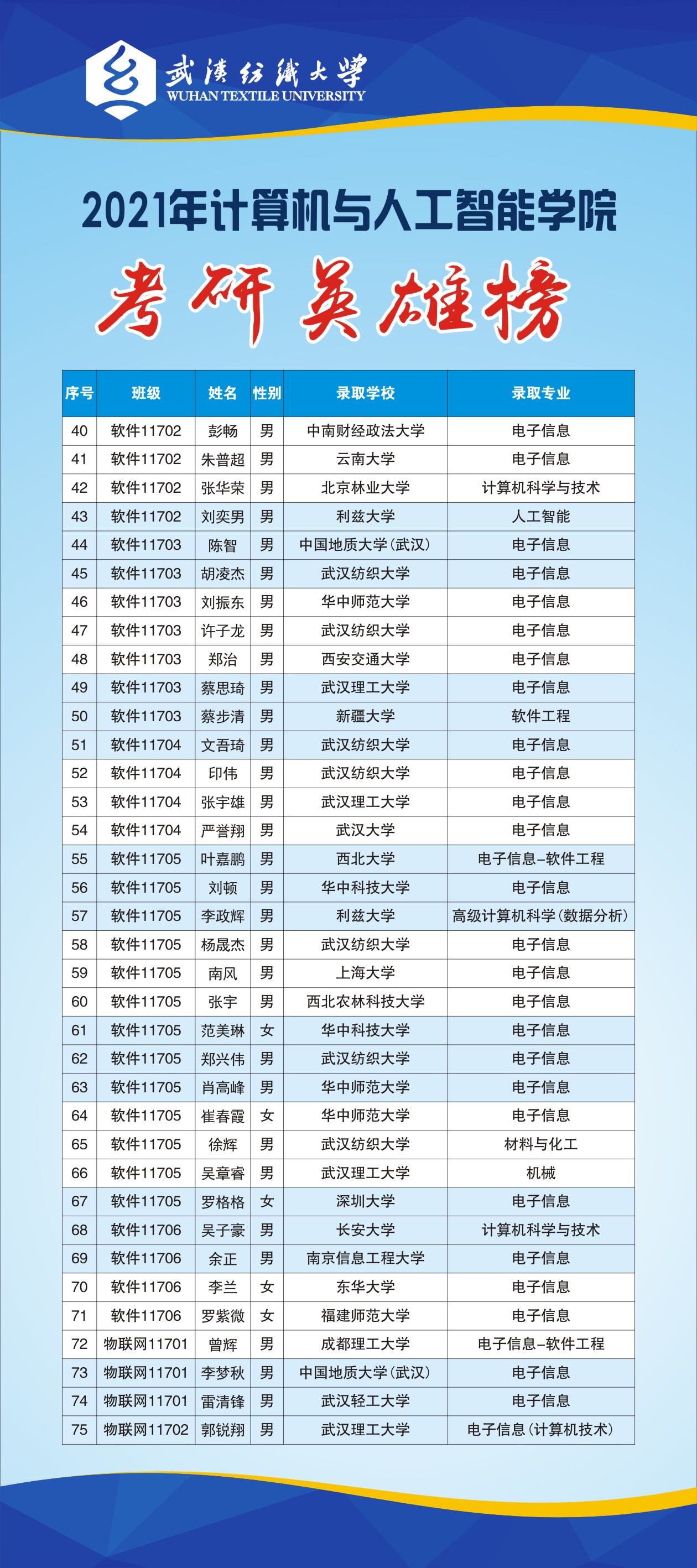 公司2006年获得计算机及应用专业硕士学位授予权,2010年获得计算机科学与技术一级学科硕士学位授予权,并于2012年获批湖北省重点培育学科,2016年计算机科学与技术学科在第四轮学科评估C-;2012 年获软件工程专业硕士学位授予权,2018年通过专业硕士学位点专项评估。
