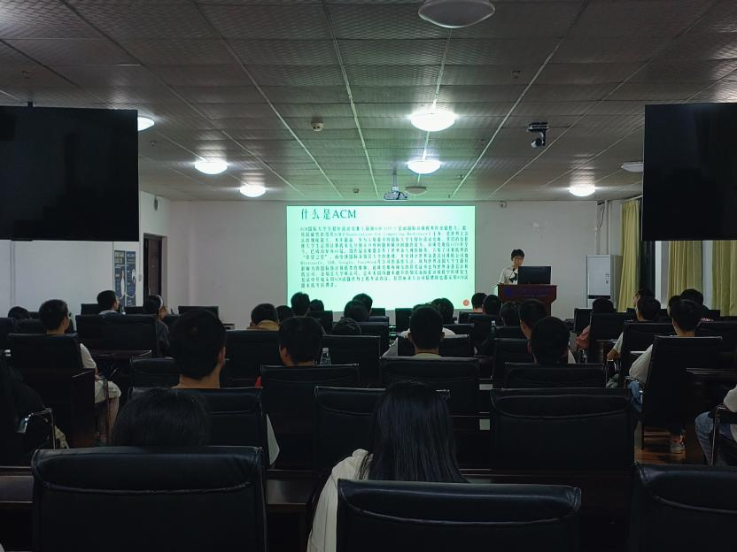 曹翔宇向大家详细介绍了ACM的背景和目标,包括为什么要参加ACM竞赛、ACM的筛选赛制度以及题目特点。随后,邀请了裘贺宝、周黄灏两位优秀的俱乐部代表上台分享他们的参赛经验。