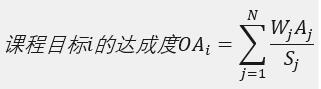 其中:i=[1,2,3,4,5,...]。支撑课程目标i达成度的所有考核点的权值之和为1, 即